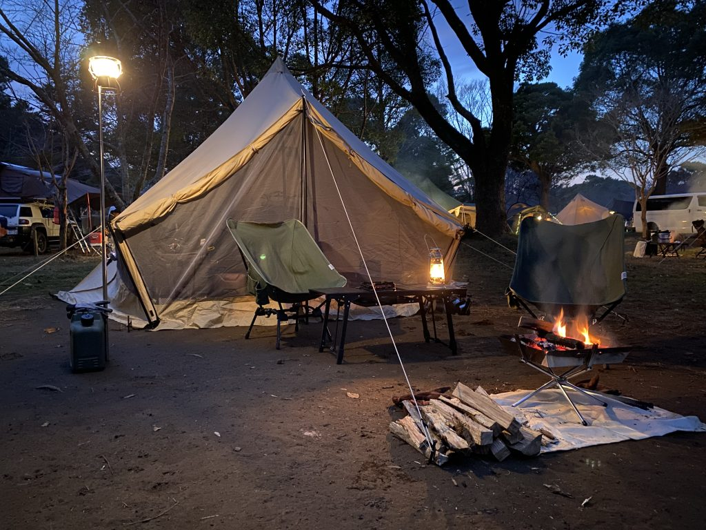 趣味の1つでもあるキャンプです。年末はまとまったお休みが取れるため、夫婦でキャンプを楽しみます。行き先は毎年違って、今年は千葉の勝浦に2泊3日で行ってきました。千葉に住んでいながらあまり旅行した事が無かったのと、昨年から熊騒動もあり本州唯一の熊無し県であるため勝浦に決めました。海方面に行きましたが、キャンプ場は林間でマイナスイオンがたっぷりでした。気温もすごく暖かく日中で20度近くまで上がりました。風もなく静かでキャンプするにはとてもベストなタイミングでした。